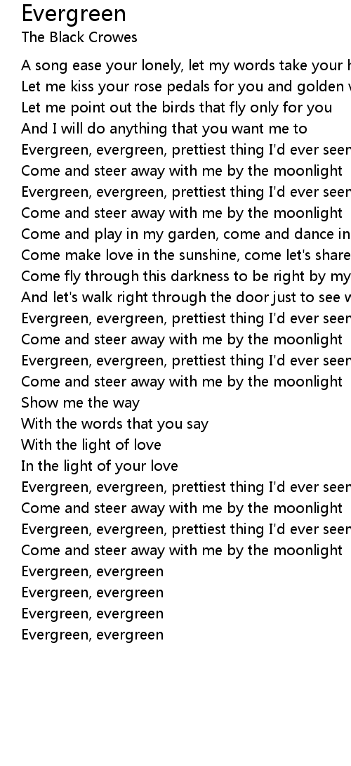 Evergreen, evergreen, prettiest thing I'd ever seen |