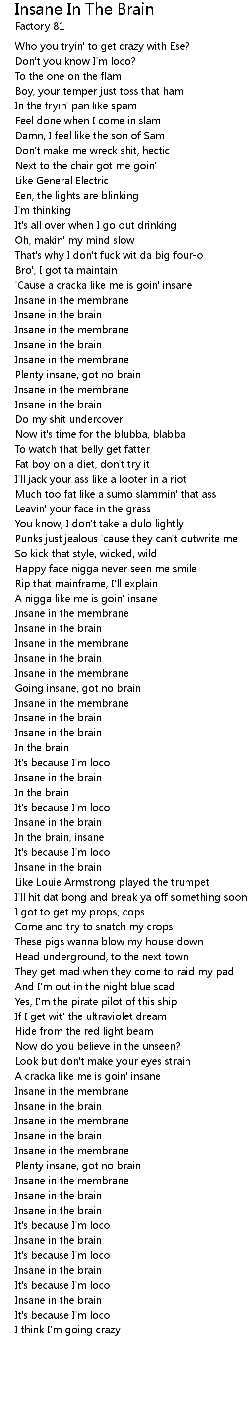 Song Insane In The Brain