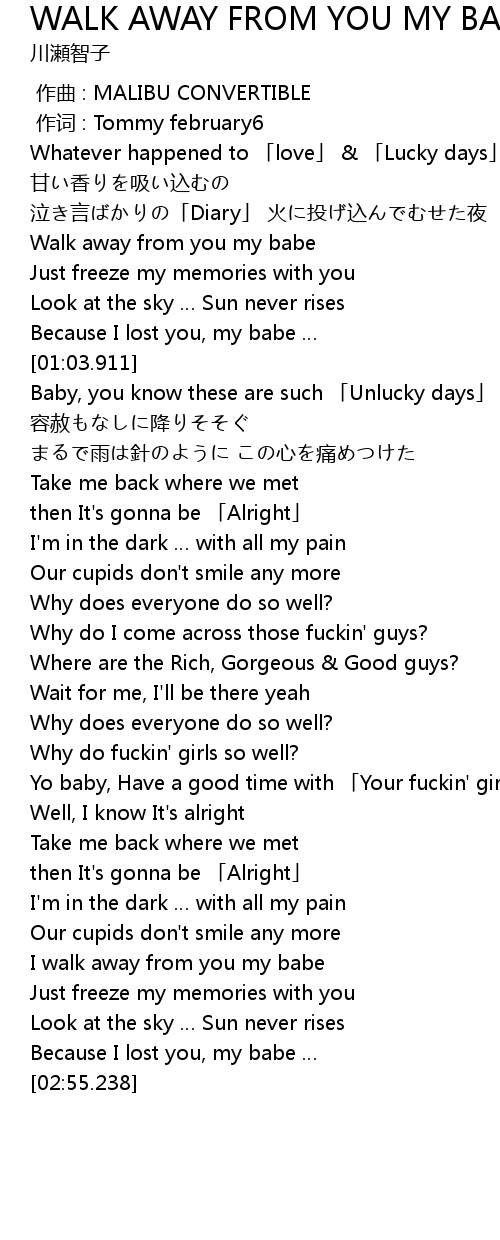 | [01:12.844] | Baby, you know these are such 「Unlucky days」 |