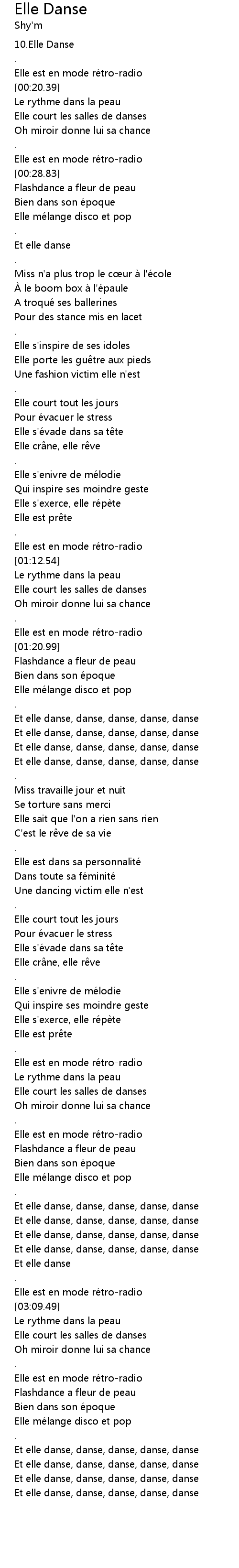 | [03:24.44] | Et elle danse, danse, danse, danse, danse |