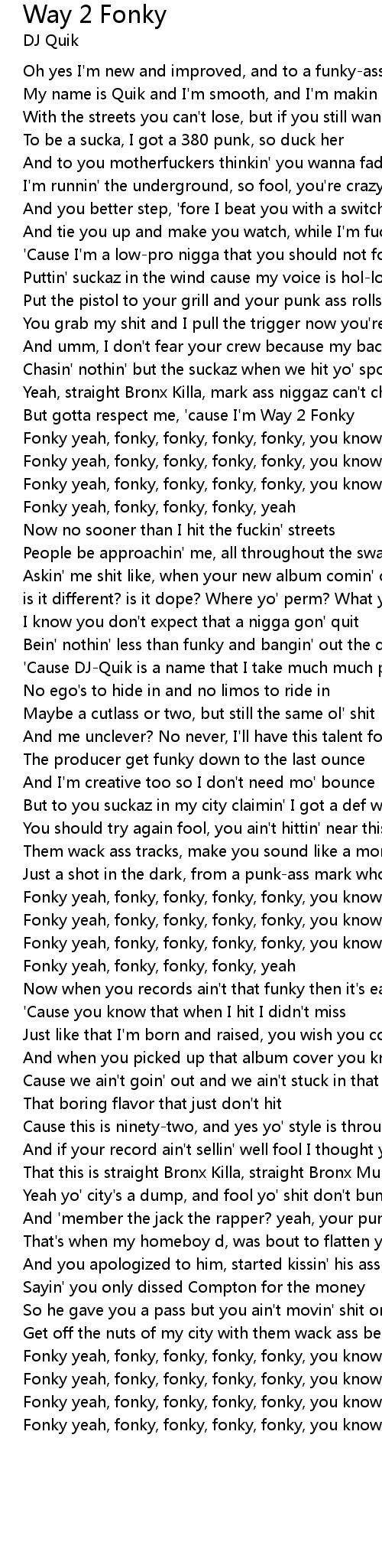 But gotta respect me, 'cause I'm Way 2 Fonky |