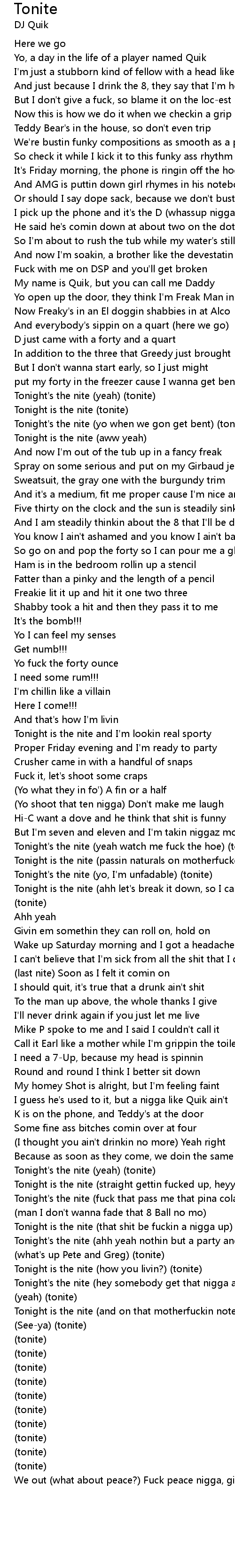 Tonight's the nite (fuck that pass me that pina colada) (tonite) |