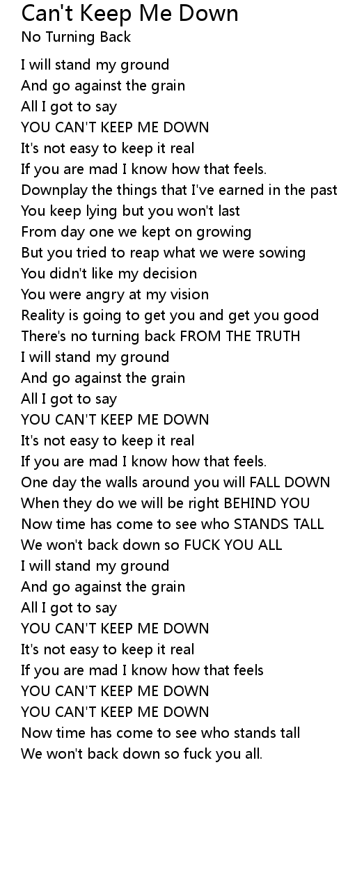 YOU CAN'T KEEP ME DOWN |