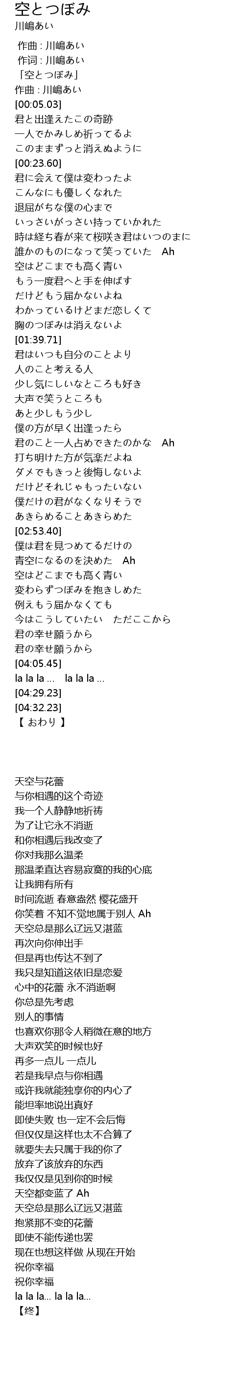 | [00:01.03] | 「空とつぼみ」 |