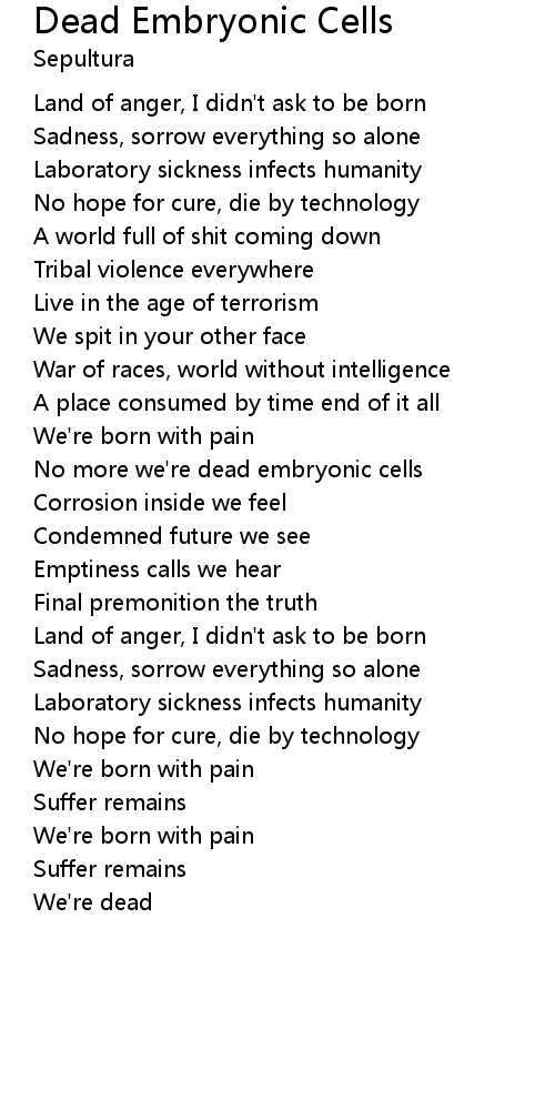 No more we're dead embryonic cells |