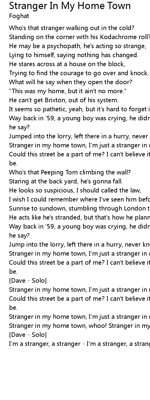 Stranger In My Home Town Lyrics