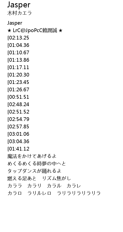 | [02:03.22] | カラロ ラリルレロ ラリラリラリラリラ |