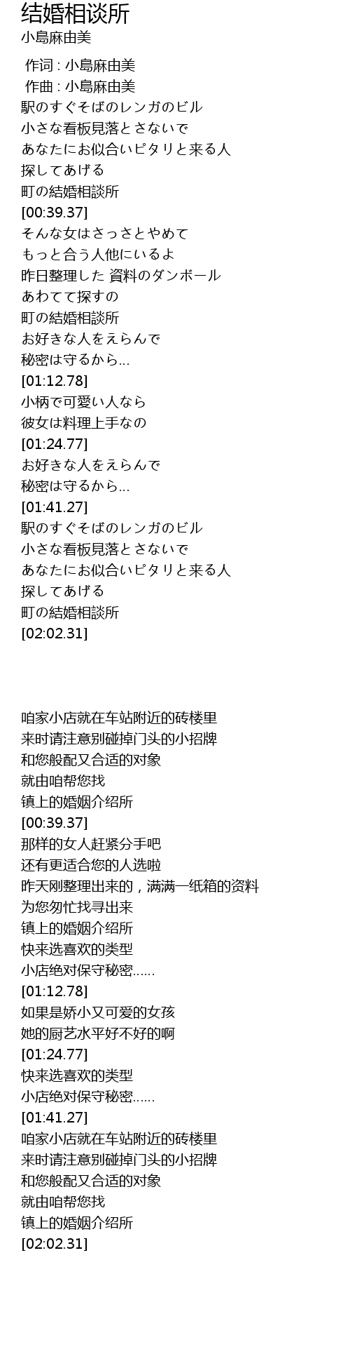 | [00:37.18] | tīng jié hūn xiāng tán suǒ |