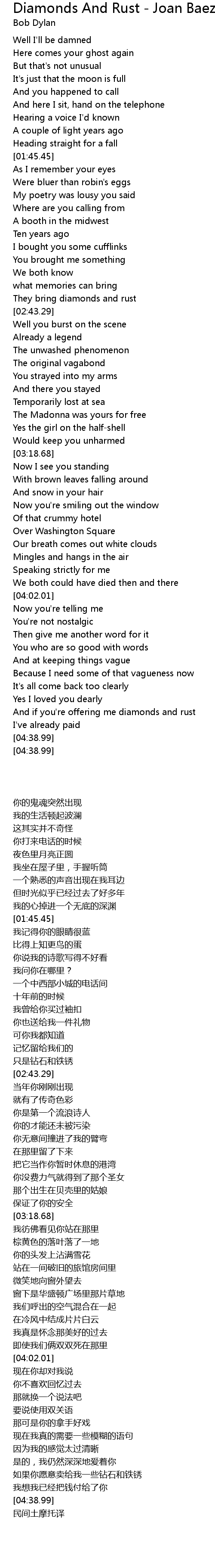 Song Diamonds And Rust - Joan Baez