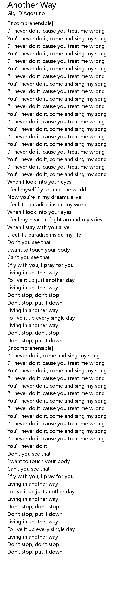 I'll never do it 'cause you treat me wrong |