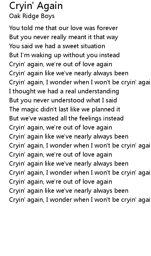 Cryin' again, I wonder when I won't be cryin' again |