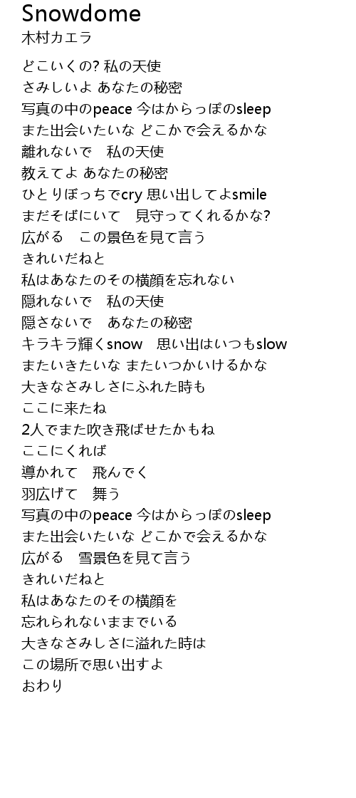 | [02:03.57] | キラキラ輝くsnow 思い出はいつもslow |