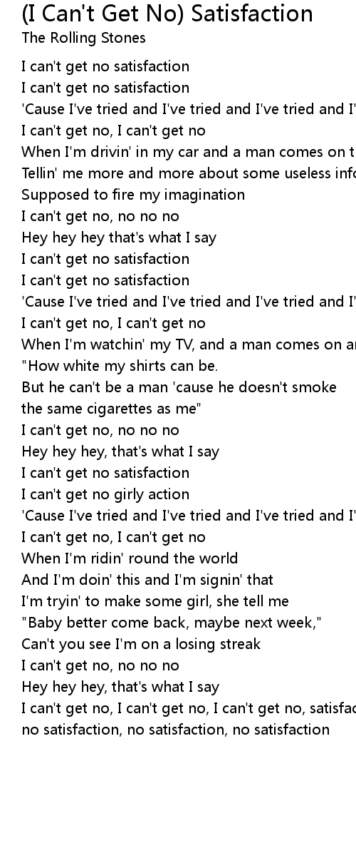 I can't get no, I can't get no, I can't get no, satisfaction |