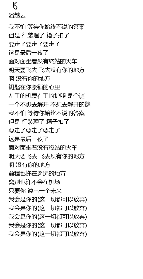 | [02:17.000] | 明天要飞去 飞去没有你的地方 |