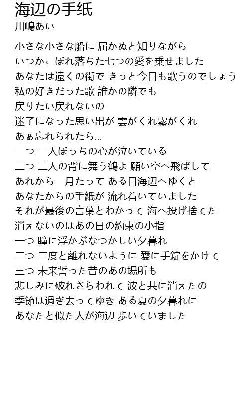| それが最後の言葉とわかって 海へ投げ捨てた | |