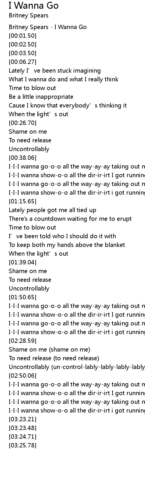 | [00:00.50] | Britney Spears - I Wanna Go |