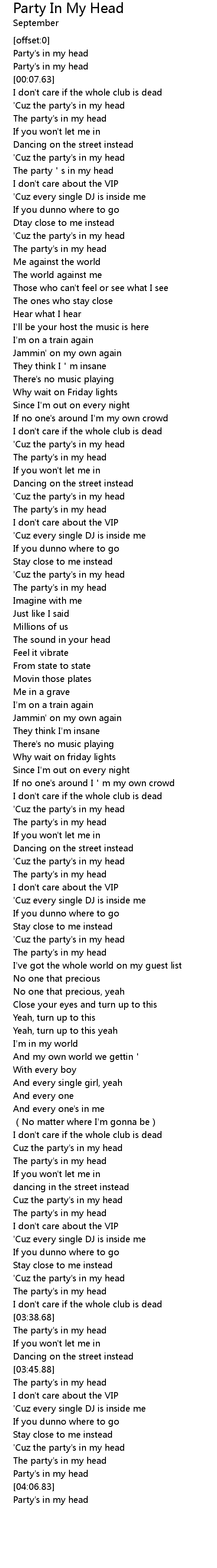 | [03:48.33] | The party's in my head |