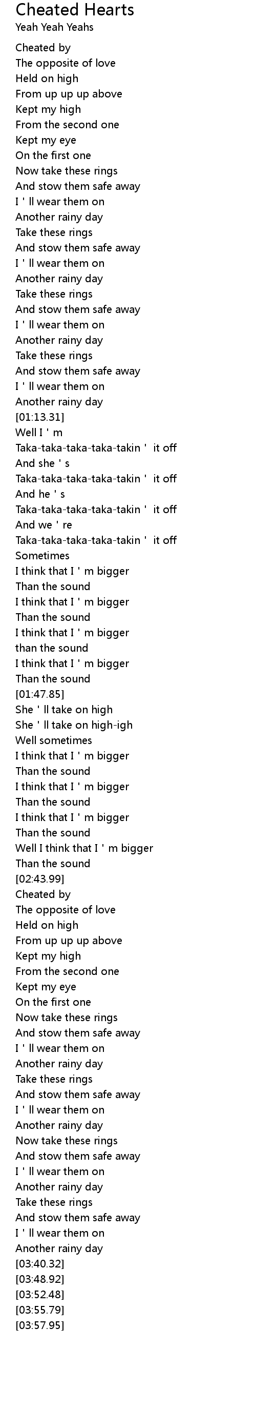 | [02:57.62] | Cheated by |