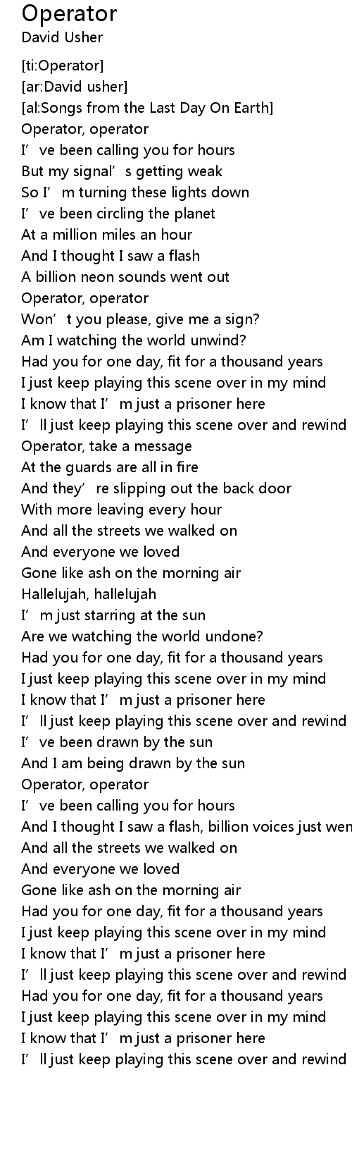 | [00:41.95] | Operator, operator |