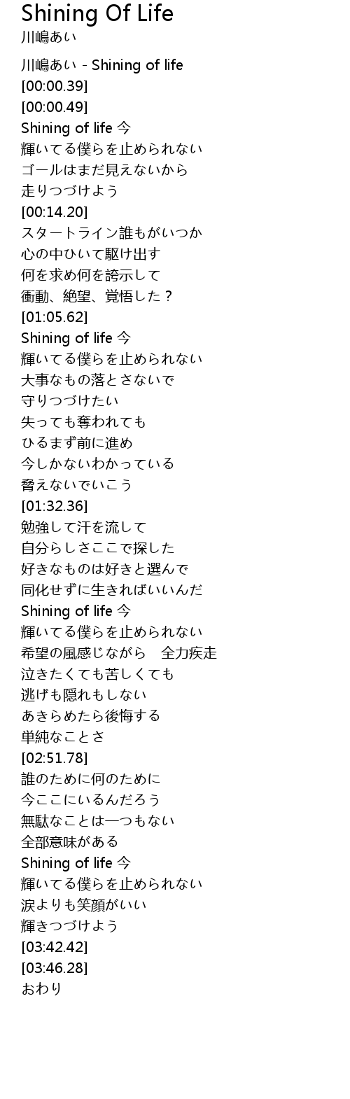 | [02:31.71] | 希望の風感じながら 全力疾走 |