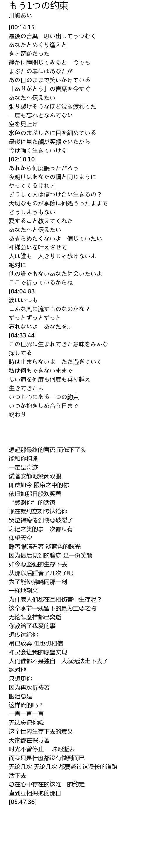 | [00:20.03] | 最後の言葉 思い出してうつむく |