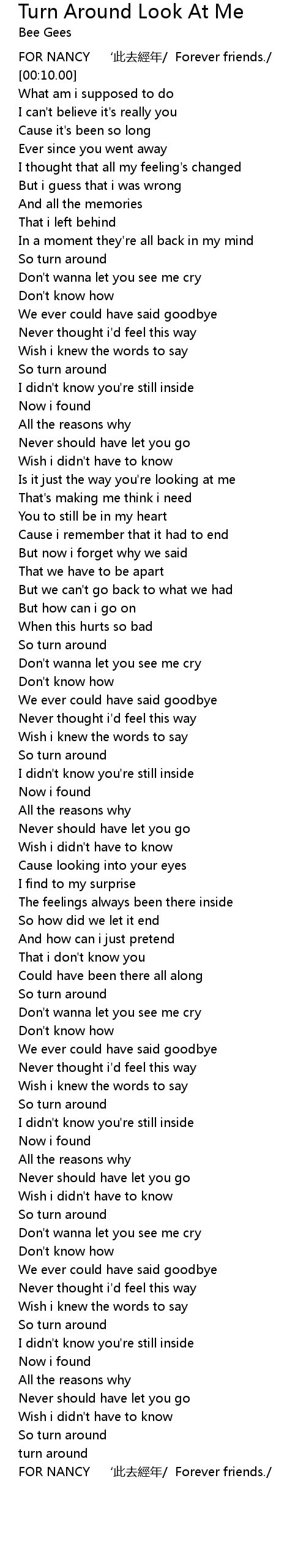 | [00:03.00] | FOR NANCY ‘此去經年/ Forever friends./ |