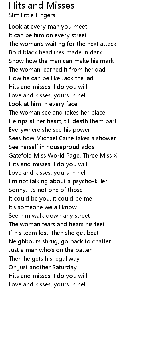 Hits and misses, I do you will |