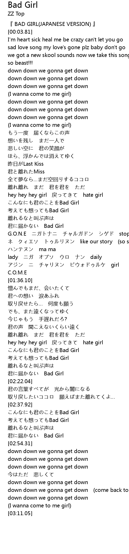 | [00:00.20] | 『 BAD GIRL(JAPANESE VERSION) 』 |