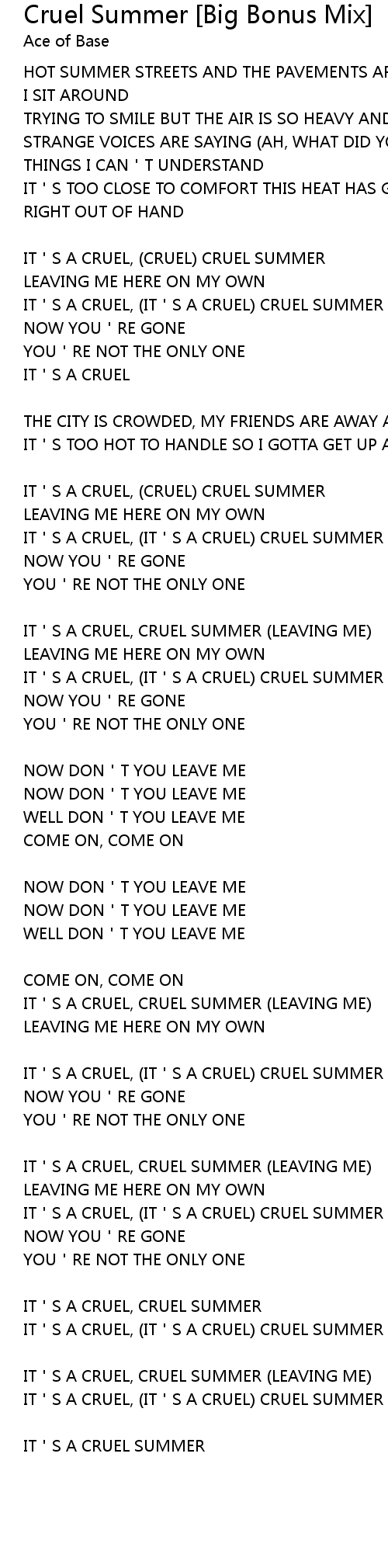 | IT S A CRUEL, CRUEL SUMMER LEAVING ME | |
