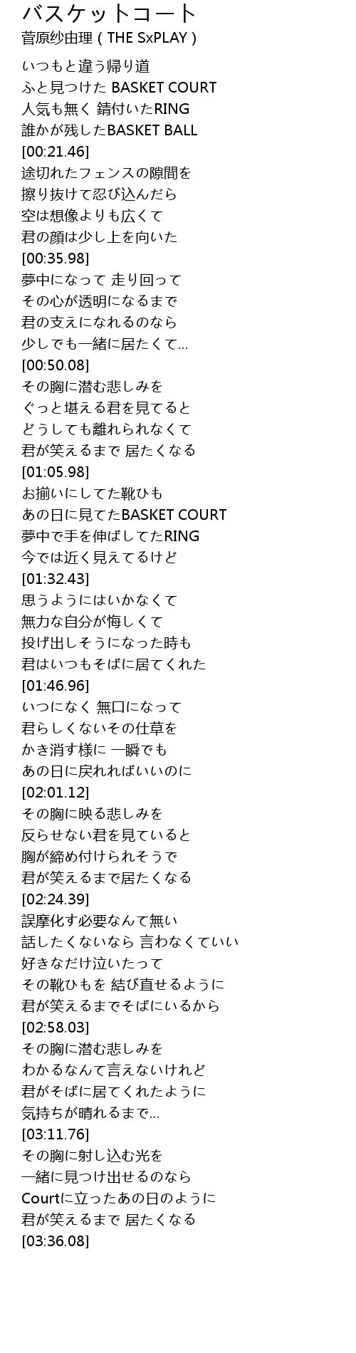 | [01:21.83] | あの日に見てたBASKET COURT |