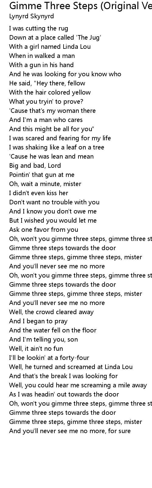 Oh, won't you gimme three steps, gimme three steps, mister |