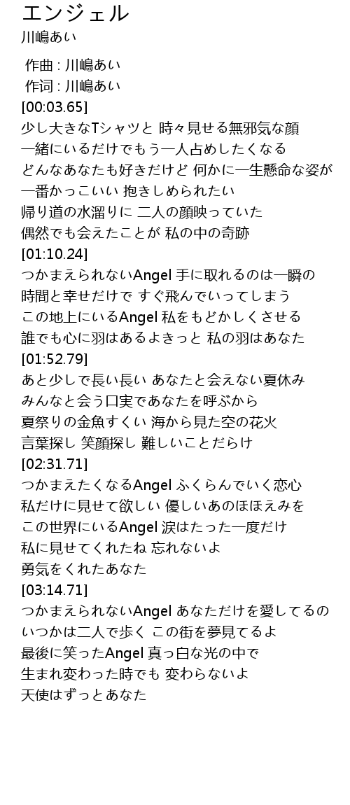 | [00:01.00] | 作词 : 川嶋あい |