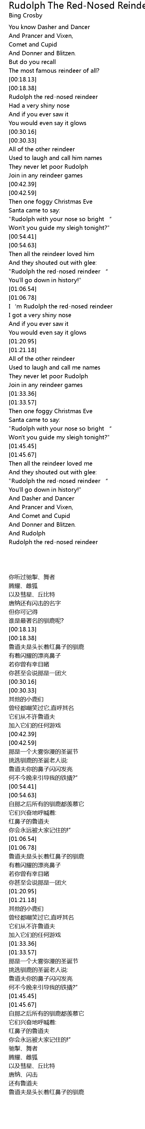 | [01:51.31] | "Rudolph the red-nosed reindeer “ |