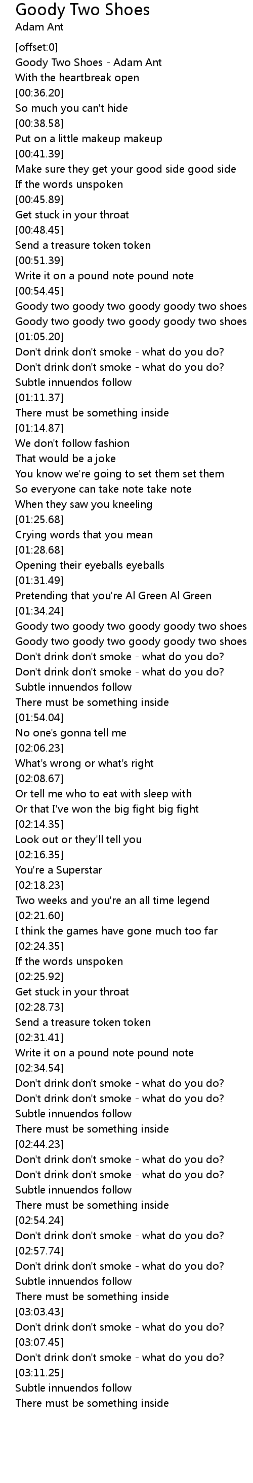 Goody two goody two goody goody two shoes |