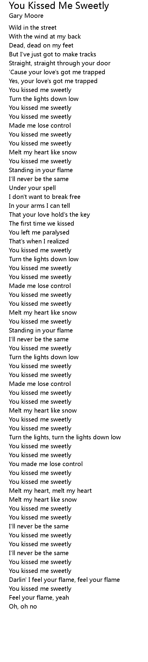 You kissed me sweetly |