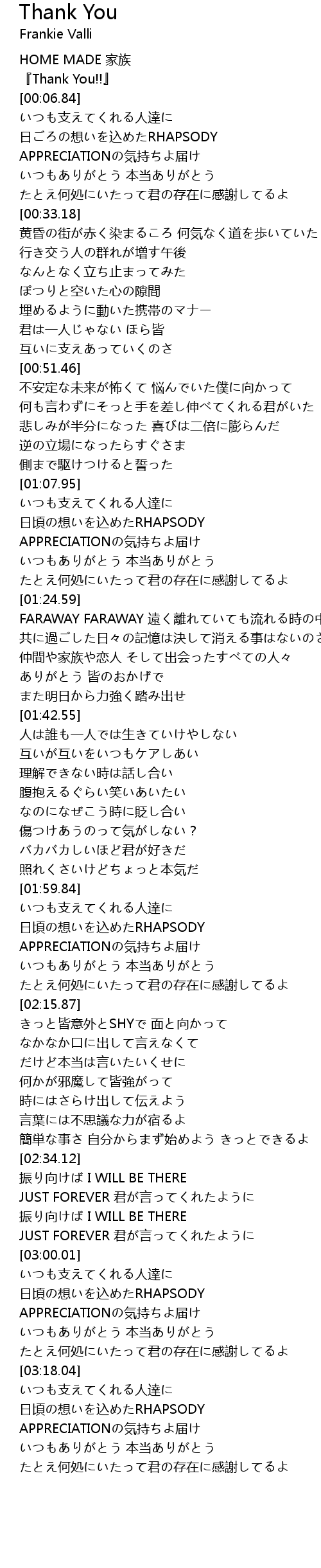 | [03:09.79] | いつもありがとう 本当ありがとう |