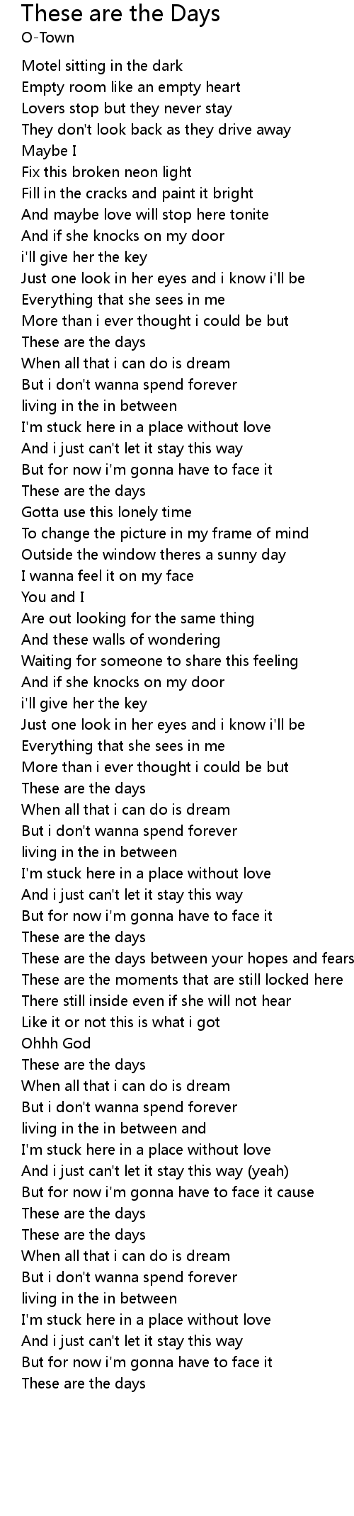 These are the Days Lyrics