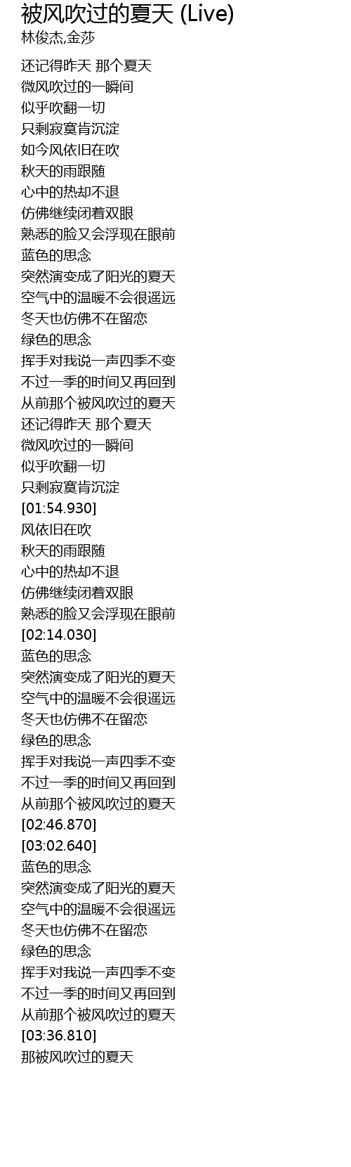 | [03:38.620] | nà bèi fēng chuī guò de xià tiān |