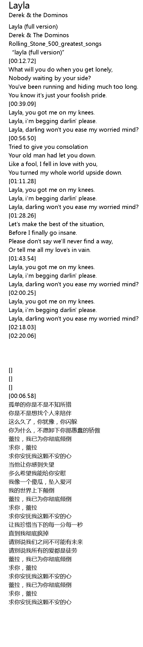 | [00:49.16] | Layla, darling won't you ease my worried mind? |