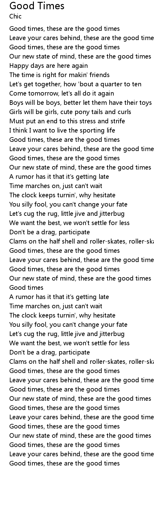Leave your cares behind, these are the good times |