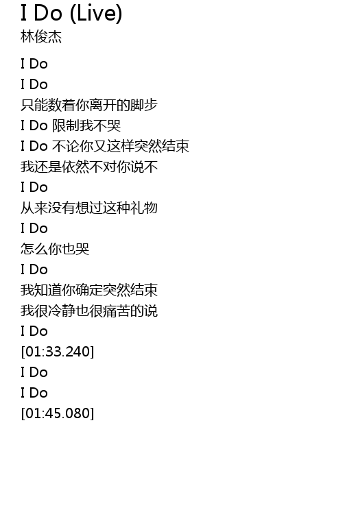 | [00:41.190] | I Do 不论你又这样突然结束 |