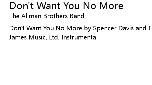Don't Want You No More by Spencer Davis and Edward Hardin Copyright 1967 Dick James Music, Ltd. Instrumental