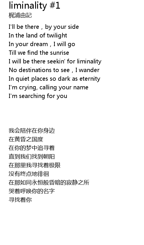 | [00:29.80] | I will be there seekin' for liminality |
