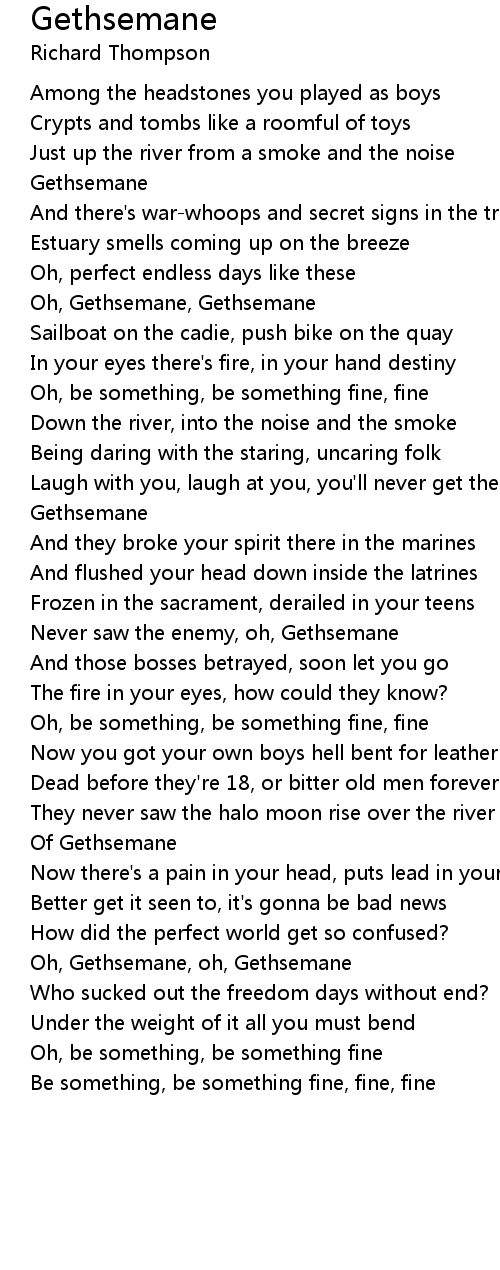 Never saw the enemy, oh, Gethsemane |