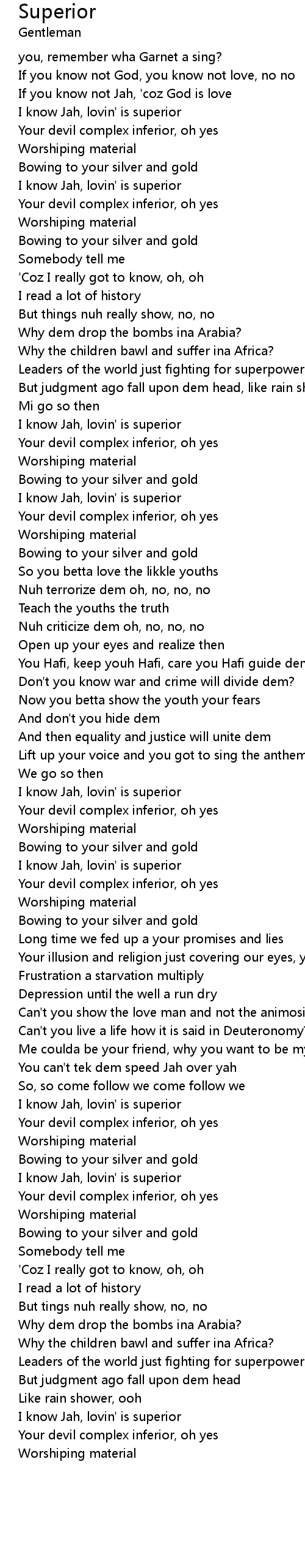 I know Jah, lovin' is superior |