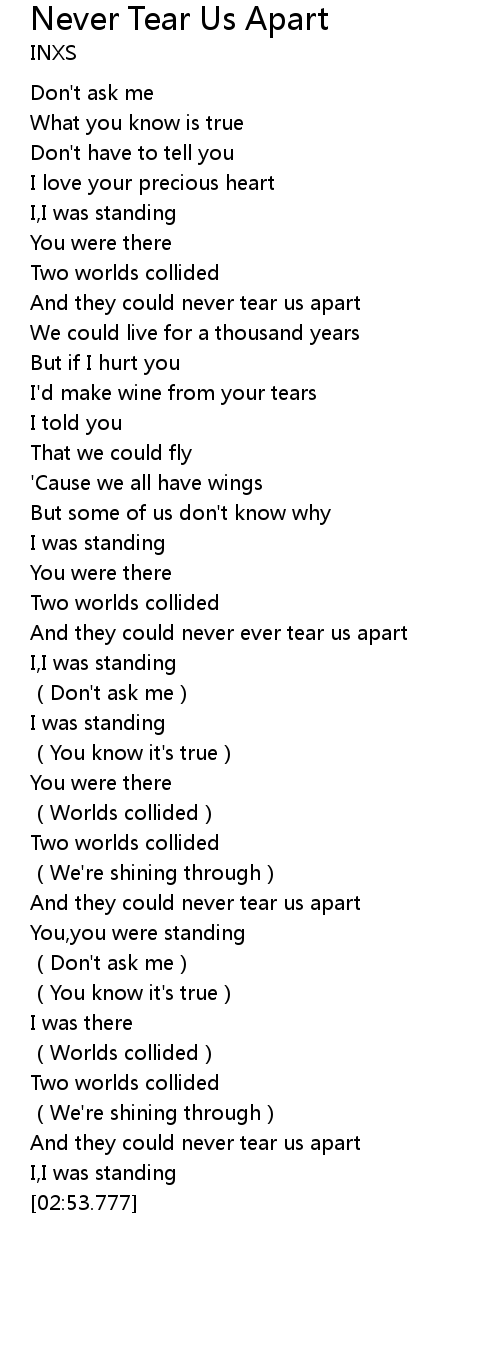 | [01:40.462] | And they could never ever tear us apart |