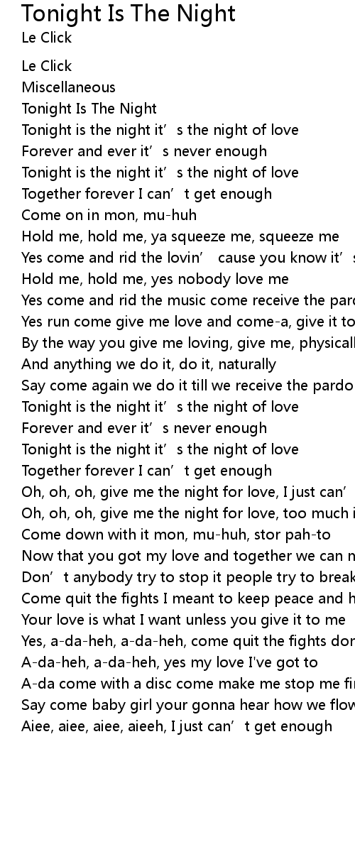 | Oh, oh, oh, give me the night for love, I just can’t get enough | |
