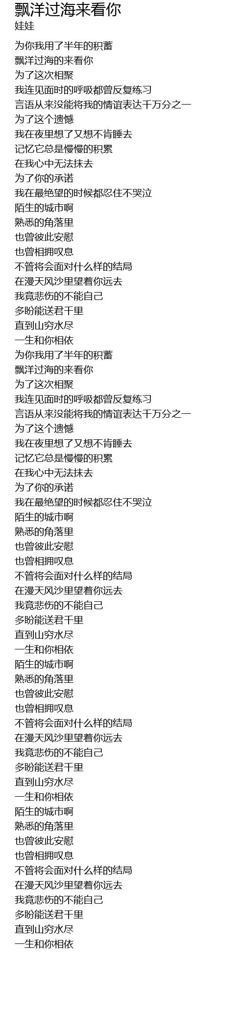 | [00:27.430] | 飘洋过海的来看你 |
