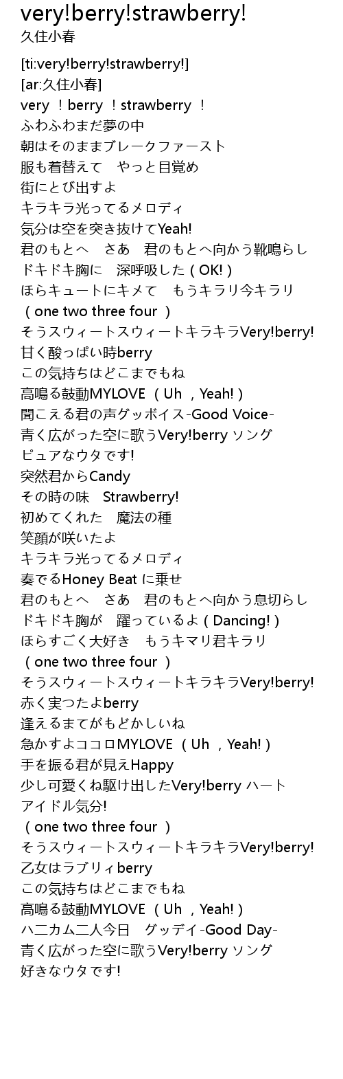 | [01:10.601] | 青く広がった空に歌うVery!berry ソング |