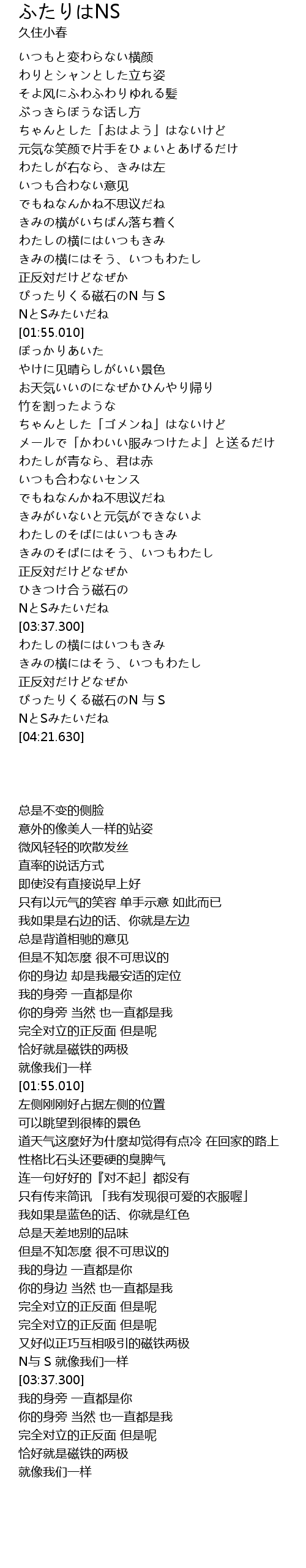 | [01:43.080] | ぴったりくる磁石のN 与 S |
